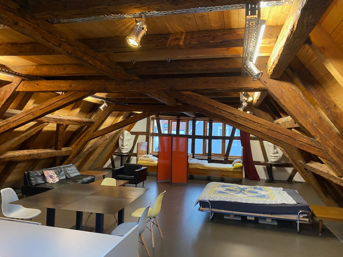 Ласкаво просимо до серця Шорндорфа! цей просторий лофт вражає своїм відкритим дизайном та високоякісними меблями. Залізнична станція знаходиться в 2 хвилинах ходьби: до центру Штутгарта можна дістатися за 25 хвилин, а за 20 хвилин - на Cannstatter Wasen. Ви будете всього в декількох кроках від історичного центру міста та найкращих ресторанів, кафе та магазинів. Велосипедна доріжка Remstal розташована безпосередньо за вхідними дверима.