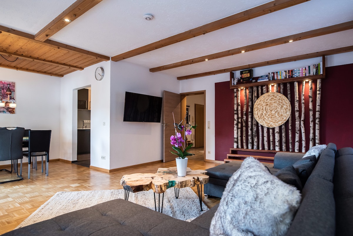 Комфортно обладнана і дуже простора мансардна квартира знаходиться на 2-му поверсі дуже тихого будинку. Житлова площа 110 кв. м (площа підлоги близько 180 кв. м). До Шварцахкламму (найпопулярнішого місця для екскурсій у Баварії) можна дістатися за 5 хвилин пішки. Нюрнберг знаходиться приблизно в 15 км і 20 хвилинах їзди на автомобілі. Вам потрібно близько 30–45 хвилин, щоб дістатися до Франконської Швейцарії з багатьма екскурсійними місцями. Насолодіться перебуванням у цьому просторому, затишному та тихому помешканні.