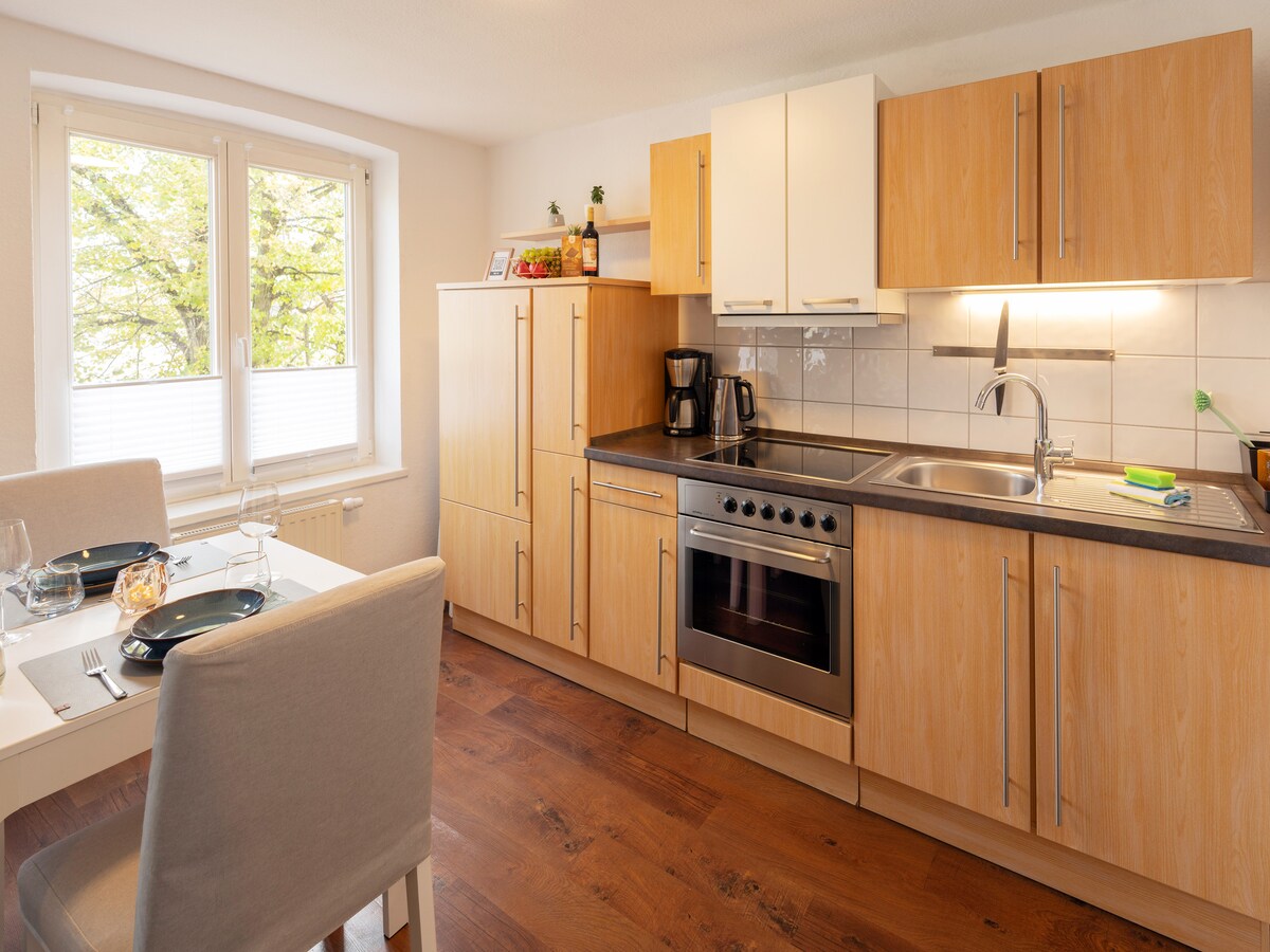 Сучасна 2-кімнатна квартира в центрі Шверина з достатньо місця для 4 осіб. Квартира знаходиться на першому поверсі та пропонує повністю обладнану кухню, вітальню з диваном-ліжком для 2 осіб, спальню з ліжком з пружинним матрацом та туалетний столик зі світлодіодним освітленням, а також душову кімнату. Ми пропонуємо безкоштовний Wi-Fi, безкоштовне паркування, а також надаємо постільну білизну та рушники. Старе місто Шверин розташоване неподалік.
