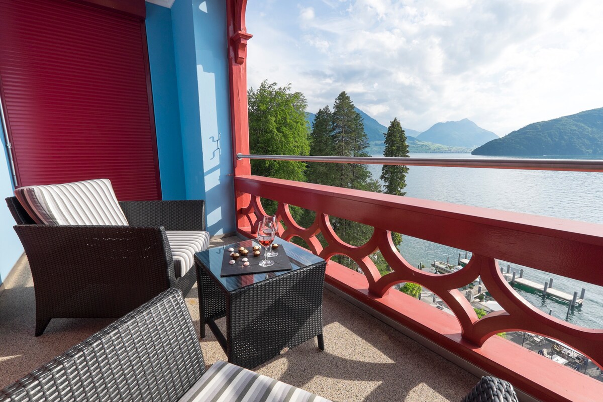 Ексклюзивна квартира прямо на озері з видом на озеро та гори та приватним доступом до озера Люцерн та причалу. - Головна спальня з великим двоспальним ліжком та ванною кімнатою - 2-а спальня з 2 ліжками та друга ванна кімната - Розкішна кухня - Гідромасажна ванна з приголомшливим видом у квітні-жовтні (тільки влітку) - Розташовано в центрі: Люцерн за 35 хвилин, Цюрих за 55 хвилин. Лугано за 1,5 години, Андерматт, Тітліс за 30 хвилин - Гаряча точка для віндсерфінгу - Електрична зарядна станція за запитом.