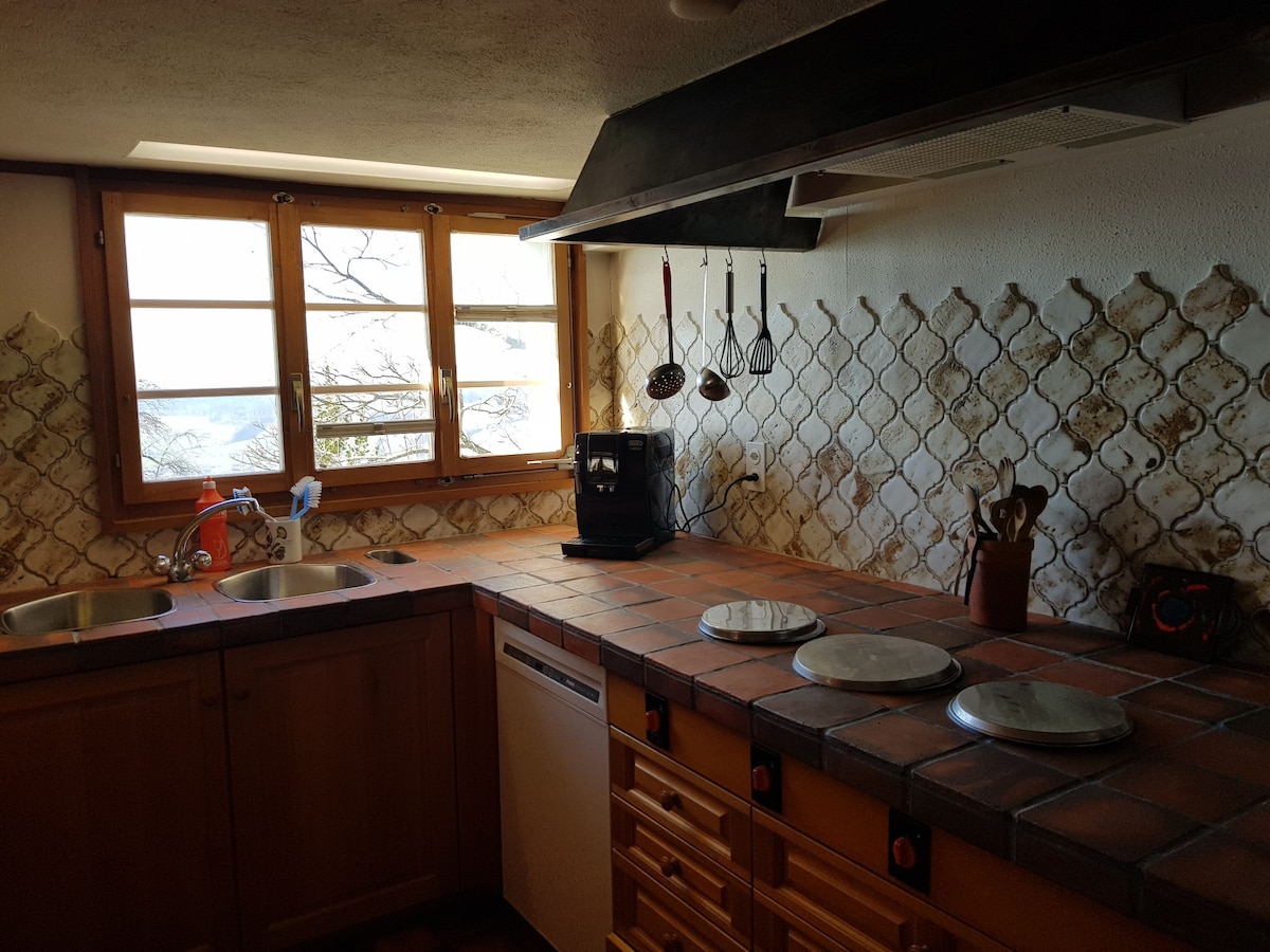 Насолоджуйтеся спокоєм, приватністю та захоплюючим гірським фоном. Наш будинок вражає своєю історією та характером. Будинок з гордістю несе свій вік, але дуже добре доглянутий і стильно облаштований: тут ви знайдете душу замість стерильної досконалості. Патина та невеликі сліди часу є частиною чарівності. Завдяки капітальному ремонту в 2021 році ви зможете насолоджуватися сучасними стандартами. Ідеальне місце для сімейних зборів або відпочинку з друзями.
