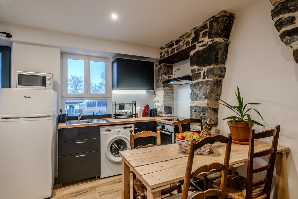 Чарівна будівля для 4 осіб площею 58 м2 у будинку, з окремою спальнею та мезоніном. Ванна кімната з великим душем і туалетом. Обладнана кухня (духовка, мікрохвильова піч, індукційна плита, холодильник, посудомийна машина, кавова машина) і відкрита для вітальні та їдальні. Багато шафи та гардеробу для зберігання. Зовнішній доступ зі столом та стільцями під павільйоном або на траві. Розташований за 5 хвилин від озера і за 35 хвилин від першого гірськолижного курорту. М 'яч на майданчику. Wifi.