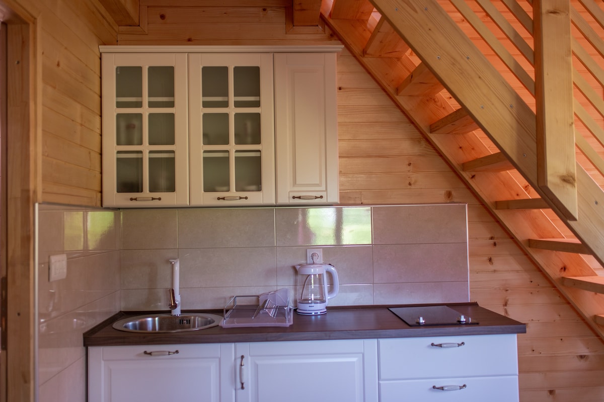 Невеликий будинок площею 25 м2, в якому є все. А найбільше – любов. Дозвольте собі відпочинок у селі, де спокій – ваш найкращий друг. Візьміть із собою спогади та незабутні враження. Будинок обладнаний усім необхідним для перебування. Вам не доведеться мучитися і носити занадто багато речей. Якщо ви не впевнені, не соромтеся запитати нас.