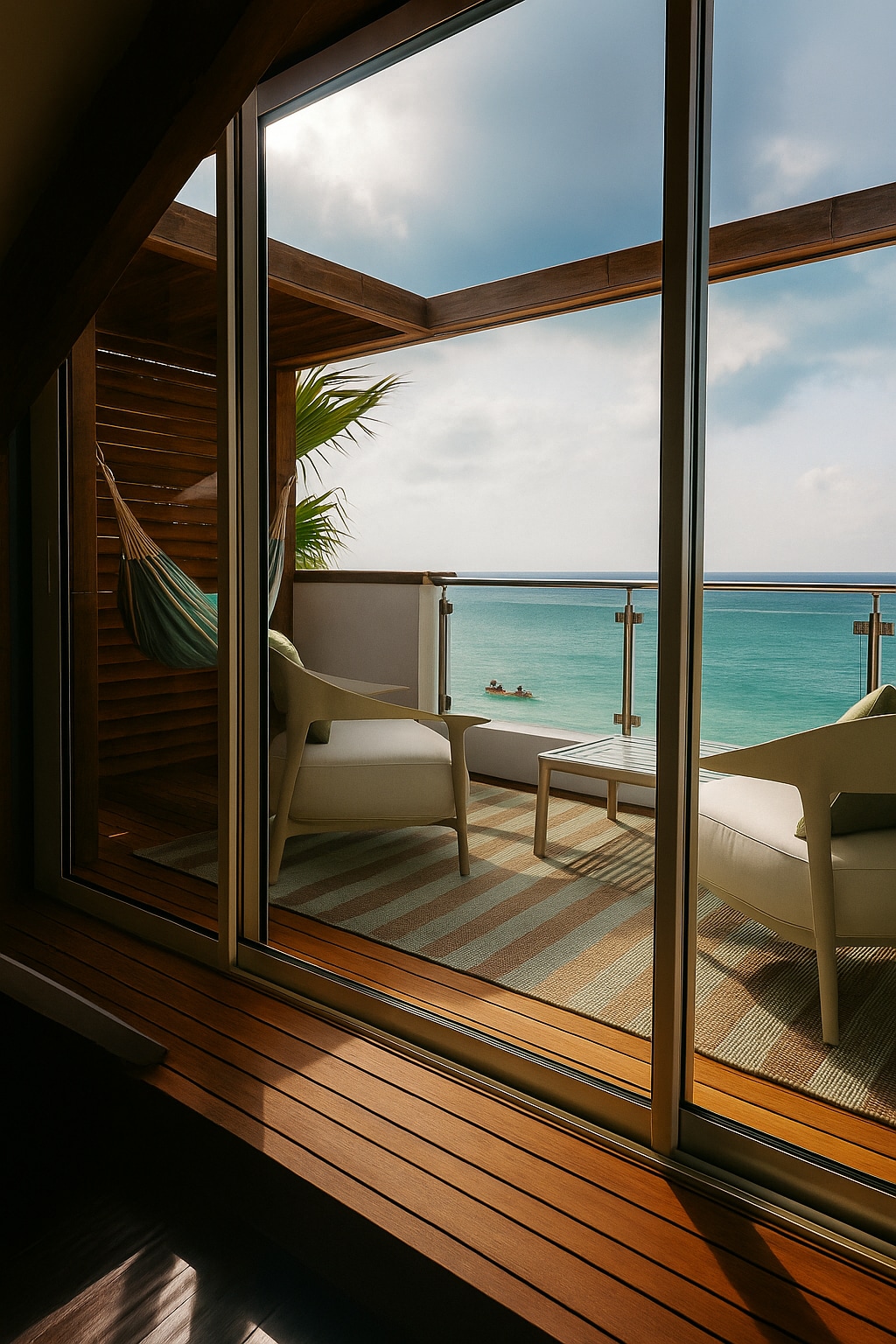 Chic and bright beachfront loft with a panoramic sea view, right on Grand Case Beach. Enjoy a mojito at sunset, relax on beach loungers reserved for guests, and walk everywhere — restaurants, bars, bakery, shops. Air conditioning, fast Wi-Fi, fully equipped kitchen: modern comfort meets Caribbean charm.
