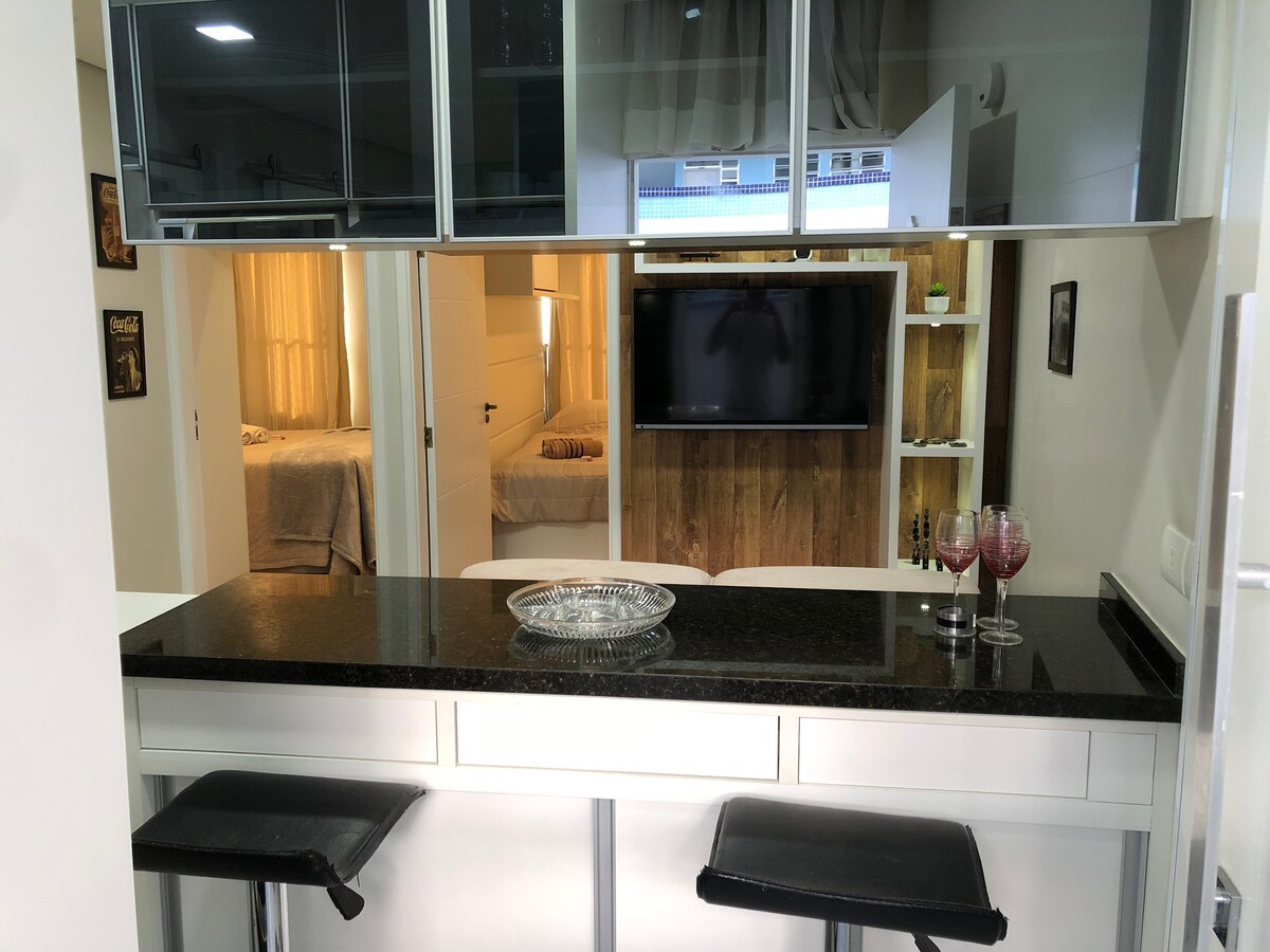 Насолоджуйтеся красою Ітанагаема в квартирі з видом на Пляж Praia do Sonho, наймодніший пляж міста і недалеко від усього. Centro Histórico, Convento, Igreja Matriz, Boca da Barra, Rio Itanhaém, Cama do Anchieta, Cibratel Beaches, Brusselsade,Prainha, Gruta Nossa Senhora de Lourdes, Morros do Sapucaitava і Paranambuco, Alameda Emidio de Souza, Praça dos Pescadores та багато інших цікавих місць. УСЕ ЦЕ РОБИТЕ ПІШКИ. Поруч із центром міста та торговим центром Belas Artes