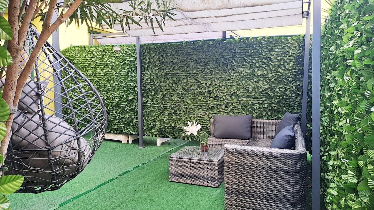 Абсолютно нова, чарівна та тиха квартира-люкс з приватним патіо та зарезервованим паркінгом. Одна спальня, вітальня з двоспальним диваном-ліжком та одна ванна кімната. Повністю обладнана кухня, кондиціонер у кожній кімнаті та супершвидкий Wi-Fi • Розташована приблизно в 2 хвилинах ходьби від зупинки лінії TRAM № 24, яка веде безпосередньо до старого міста (Дуомо). 2 хвилини ходьби від ринку LIDL. Приватний сад із диванами та набором для кави, швидкий Wi-Fi, Netflix, парковка, садова зона включено ✓