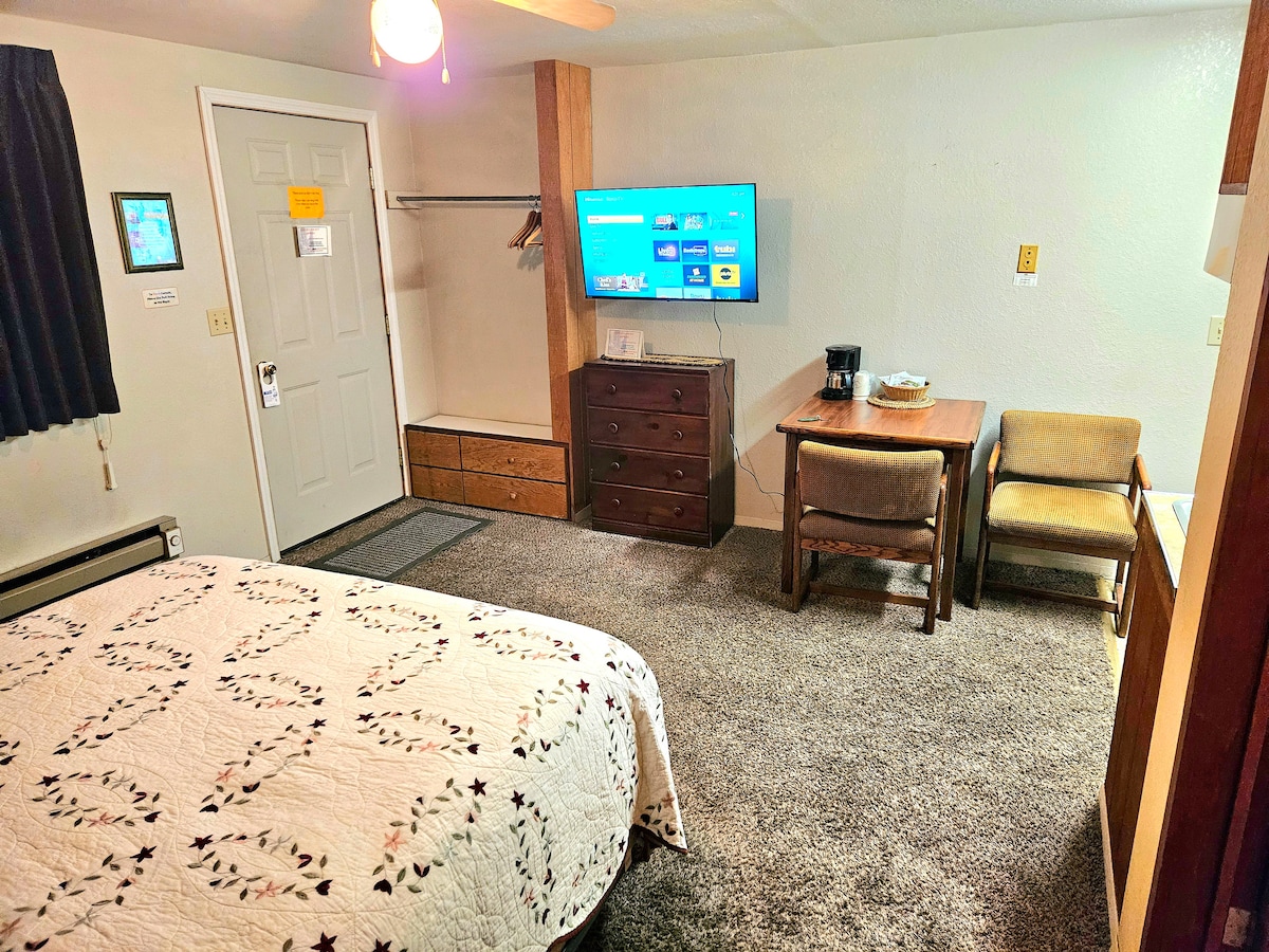 Незалежно від того, чи шукаєте ви спокою чи пригод, ви можете сховатися посеред Національного лісу, оточеного мальовничим ландшафтом, з легким доступом до лісових доріг і трас для квадроциклів. Розкіш ручної роботи поєднується з сільським шармом у цьому відкритому помешканні площею 750 кв. футів із двоспальним ліжком, диваном-футоном, робочим місцем, повністю обладнаною кухнею, обідньою зоною та ванною кімнатою з душем і пральною машиною/сушаркою. Окремий вхід і парковка, відкрита зона відпочинку для перегляду лугів і дикої природи. Зручний доступ до мережі Wi-Fi, телевізор Roku