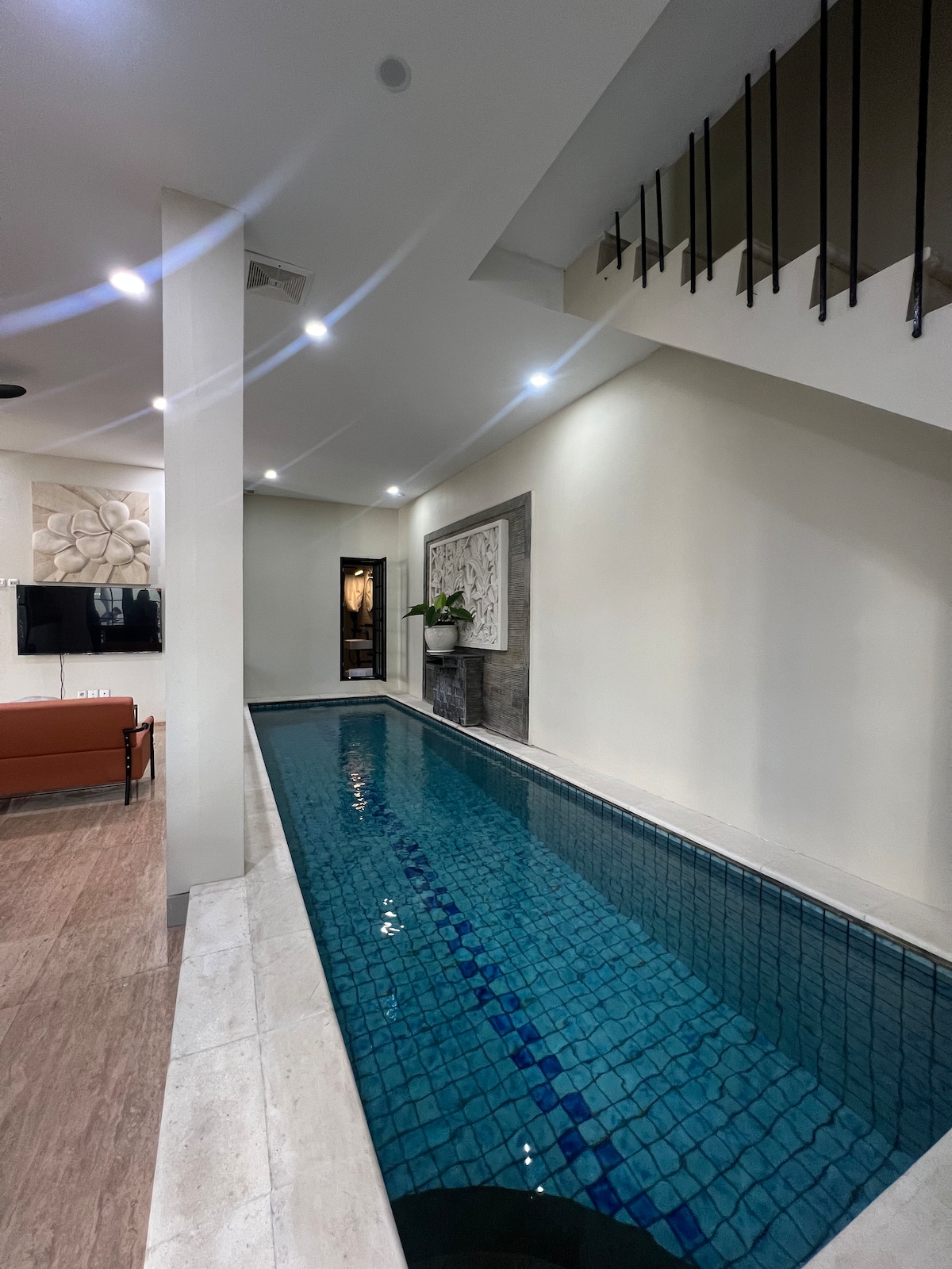 Зайдіть у цей двоповерховий будинок із 4 спальнями з двоспальними ліжками king-size і двома односпальними ліжками. Повністю обладнана зона обслуговування включає кухню, пральню, їдальню для повного обслуговування. Відпочиньте в просторій і розслаблюючій ванні. Закриті входи, персоналізований цифровий ключ, відеоспостереження та цілодобова служба підтримки клієнтів. Залишайтеся на зв 'язку з безкоштовним Wi-Fi. Пішки до готелю Tentrem і торгового центру Semarang. Лише 3 хвилини до Сімпанг-Ліми. В 5 хвилинах від Лаванг-Севу.