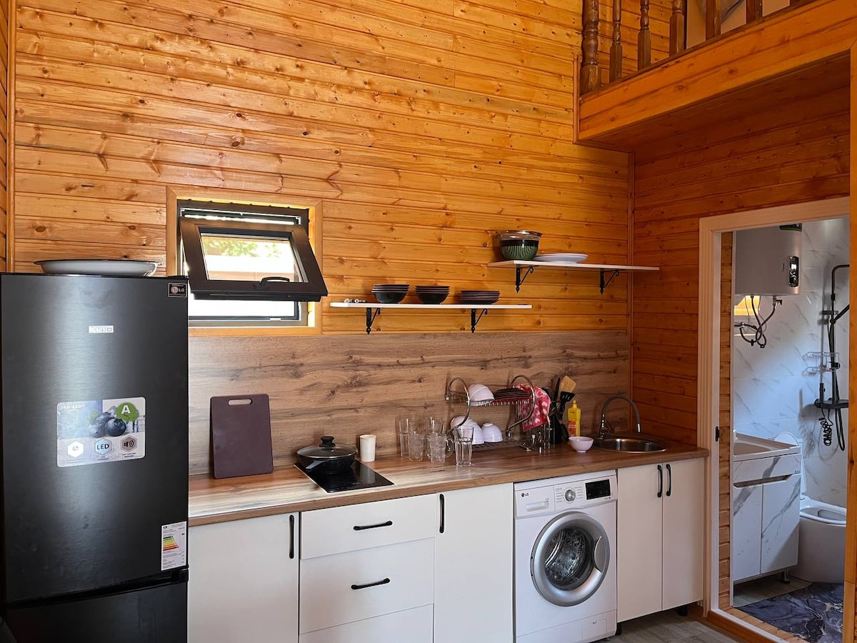 Невеликий, але затишний будинок у мальовничому Чолпон-Аті – ідеальний вибір для відпочинку на Іссик-Кулі. Гостей вітає тераса з зоною відпочинку. Усередині – світлий інтер’єр з дерев’яною обробкою, двоспальне ліжко, їдальня та повністю обладнана кухня з плитою, холодильником та мікрохвильовою піччю. Сучасна ванна кімната з душем робить перебування комфортним. Будинок ідеально підходить для пар, сімей та друзів.