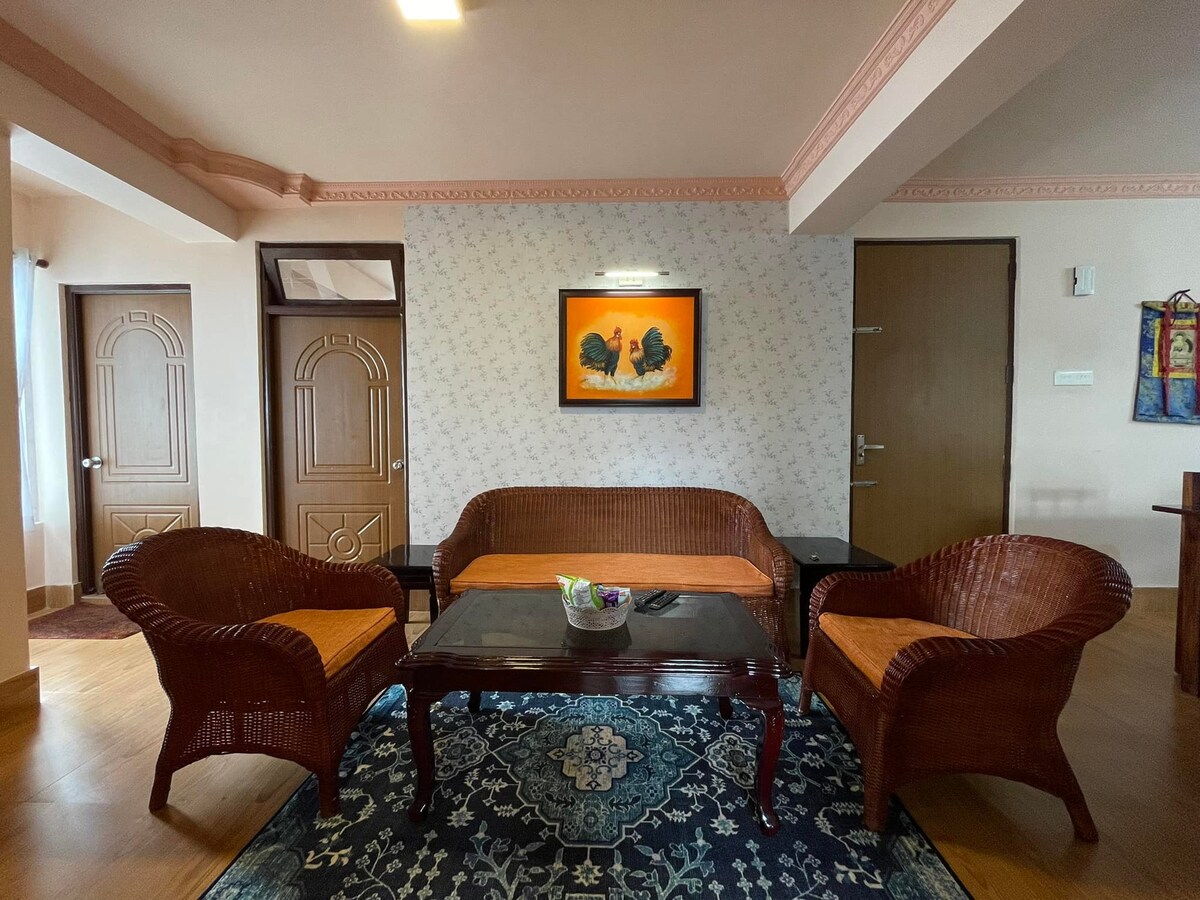 This will be the most valuable and reasonable stay in Darjeeling as you would be getting an entire apartment with fully functional kitchen and furnished living rooms and bedrooms. With just 1.5 kms away from the main town (Chauk Bazaar) , we have a safe and peaceful neighborhood suitable for couples /families/solo travelers. The attractions like zoo, HMI museum, ropeway are walkable. Shared taxi is available to move around. The view from the private balcony is mesmerizing.