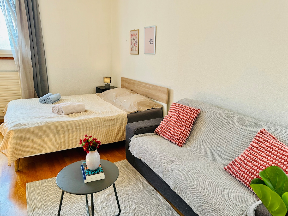 Чарівна студія, розташована в центрі Старого міста Фрібура з захоплюючим видом на зарину. Він складається з великого двоспального ліжка, ванної кімнати з душем, міні-кухні та невеликого балкона. Проживання для 1 або 2 осіб, незалежне, 24 м2, у сімейному будинку. Ми надаємо вам постільну білизну, рушники та пральну та сушильну машину. Прибирання проводиться раз на тиждень, квартира для некурців і не підходить для домашніх тварин.