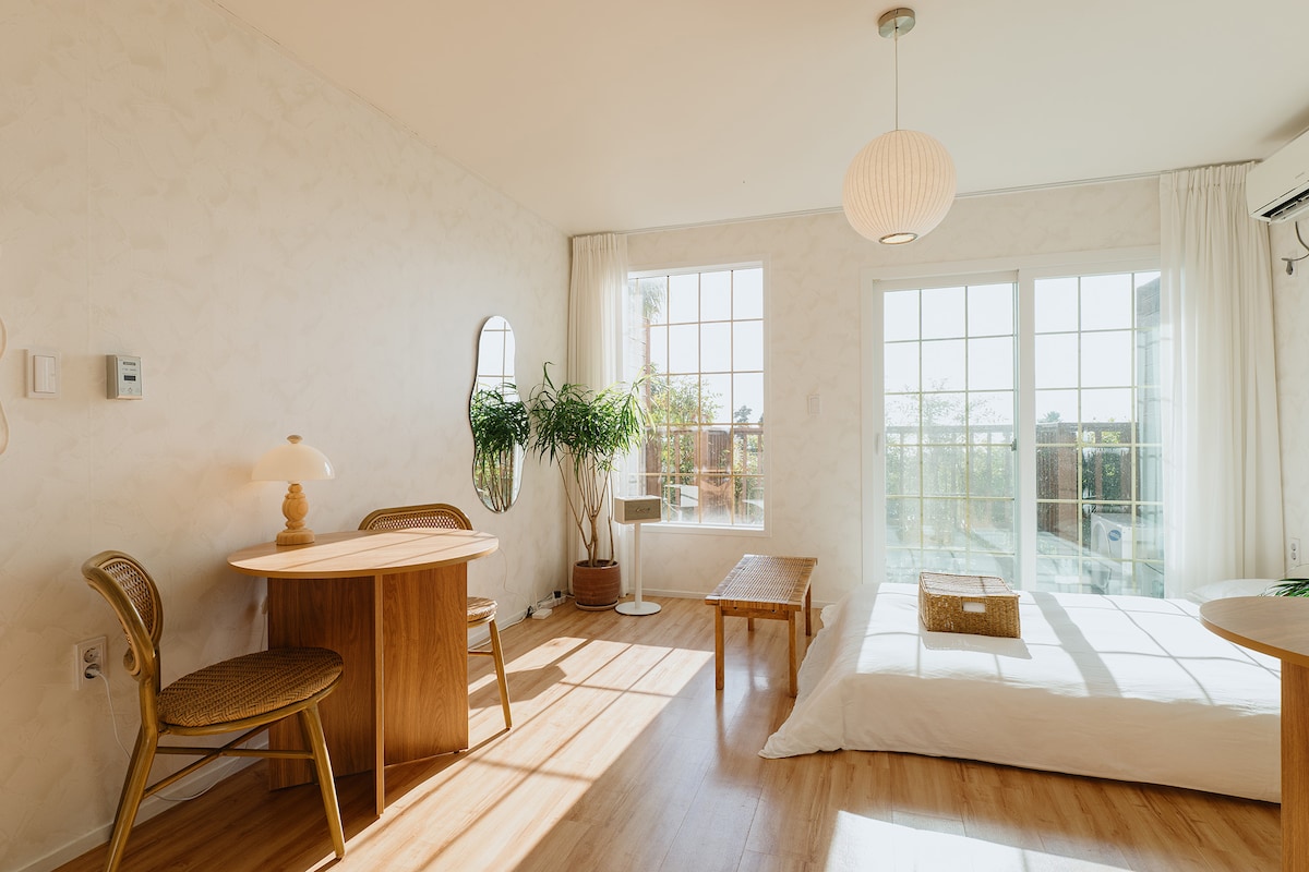 10 хвилин від аеропорту та міста Чеджу | Ресторани, магазини безмитної торгівлі, торгові вулиці | Повний варіант для 2 осіб, безкоштовне зберігання багажу, без куріння, тераса