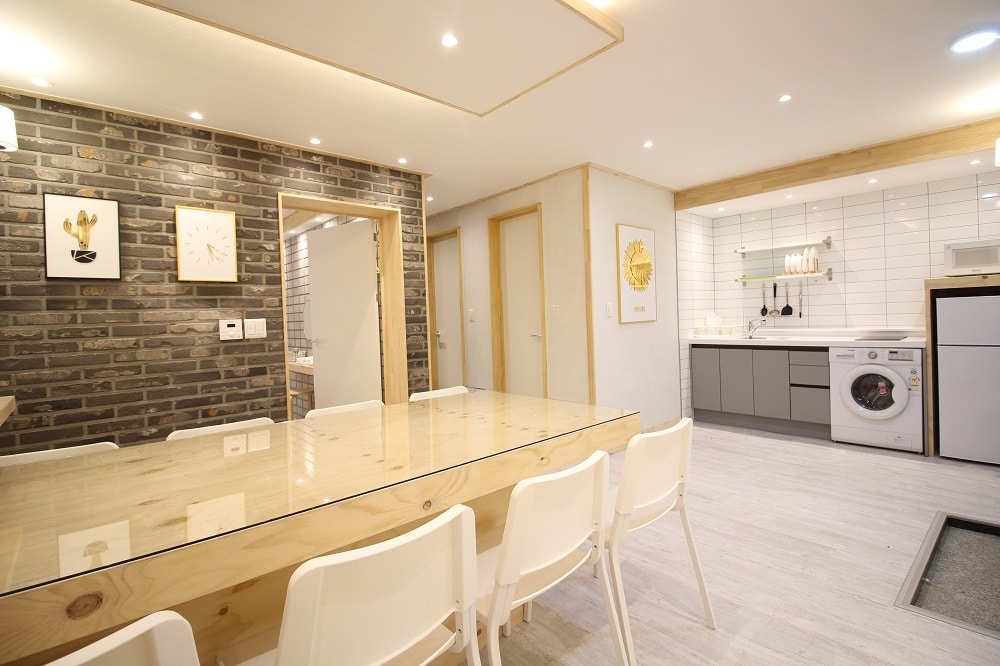 "In June 2024, this house has been newly renovated!" My house is within 2 min of walking distance from an airport bus station and 6 min from ‘Hongik University station exit no.1. Therefore, you will be able to reach most of places in Seoul very easily and conveniently. AREX(Airport railroad) passes this station, so you can directly come to my place from the airport. It’d be very suitable for travel in a big group of friends or families!