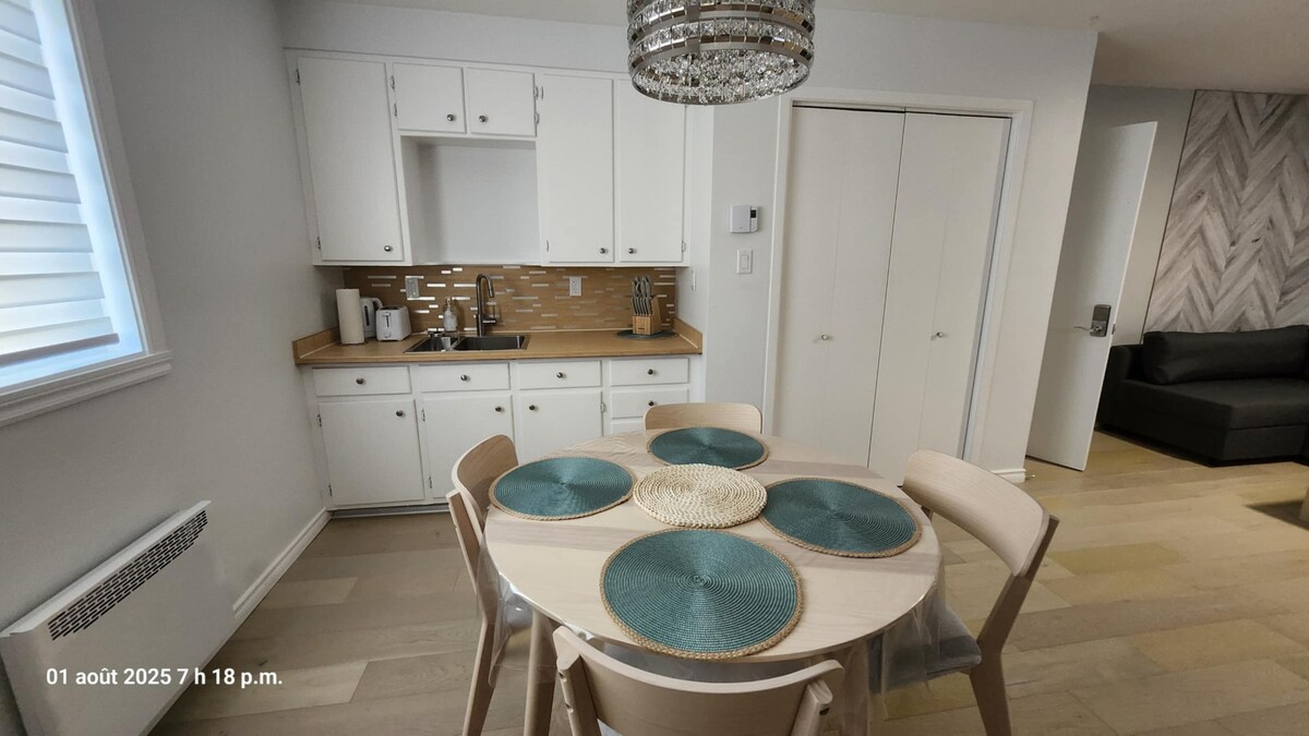Chez Mymy – Confort & calme à Sept-Îles 3½ charmant, rénové avec soin, situé dans un quartier paisible de Sept-Îles. À 5 min à pied du Vieux Quai, des restos, de l’hôpital et d’un gym 24h. Cuisine complète, literie neuve, Wi-Fi rapide, stationnement inclus avec borne électrique. Non-fumeur, sans animaux. Nous habitons l’immeuble et sommes heureux de vous y accueillir. ******* Une vérification d’identité est requise pour tous les occupants avant l’arrivée. CITQ #321597 exp. 2026-06-30