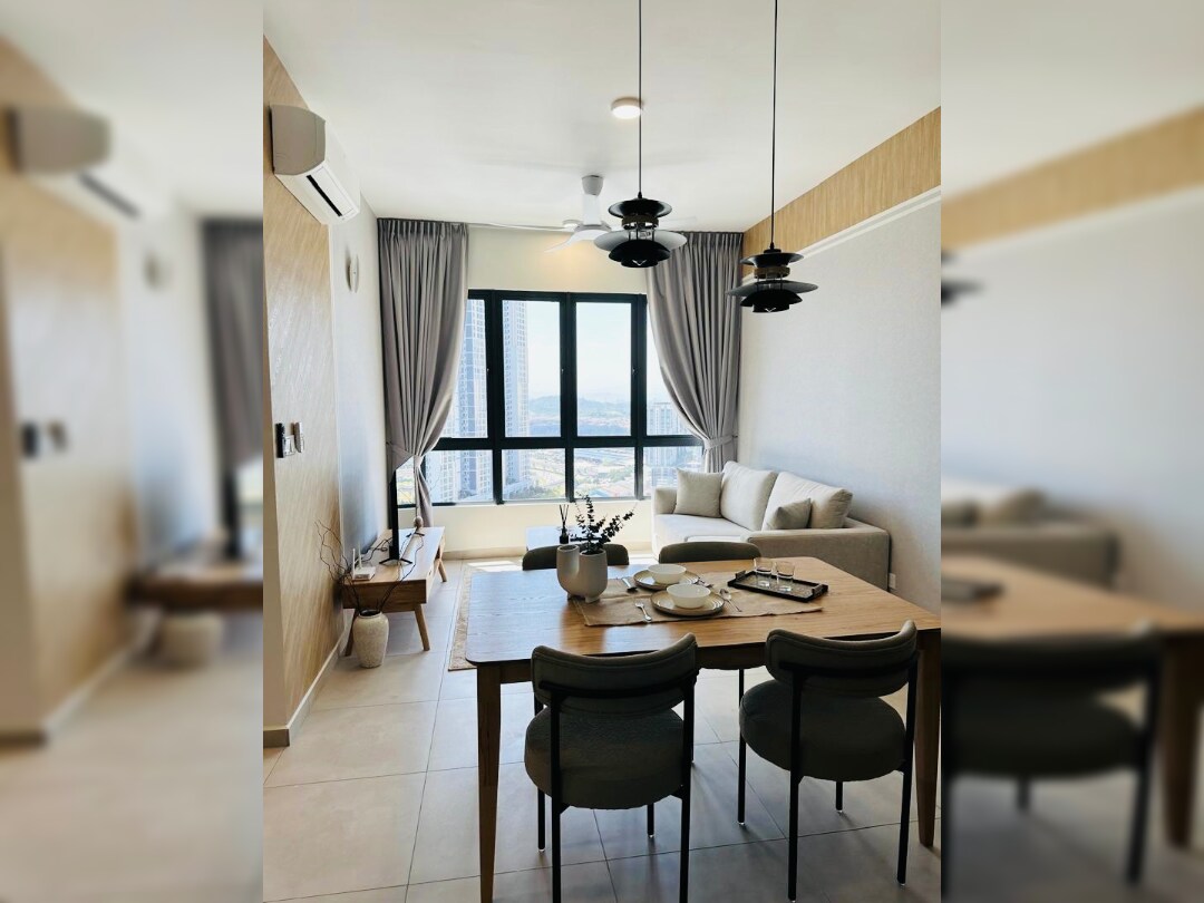Затишний дуплекс на найвищому поверсі будівлі (21-й поверх) з ліжком розміру queen size та 3-місним диваном. Підходить для короткострокових і довгострокових перебувань. Будівля розташована в торговому центрі De Centrum, де є такі магазини, як Super7 (супермаркет), Mr. DIY, Watsons та 7-Eleven, а також такі об’єкти, як пральні та клініка (Poliklinik MyMedik). •Час прибуття: з 15:00 • Час виїзду: 12:00