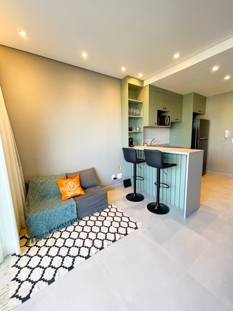 Apto tipo estudio com os ambientes separados. Quarto com armário embutido e mesa para home office, 2 TVs (sala e quarto), TV com canais HD e Wi-Fi de alta velocidade. Há ventiladores de piso em todos os ambientes além de microondas, airfryer, fogão, geladeira duplex e todos os utensílios de cozinha. O banheiro é privativo com box de vidro. Possui máquina de lavar roupa. Meu apto não possui vaga de garagem, porém, indico uma moradora que costuma locar dentro do prédio