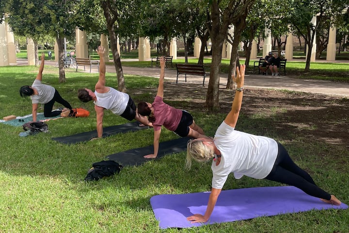 Приєднуйтесь до легкого заняття йогою на свіжому повітрі для будь-якого рівня підготовки.