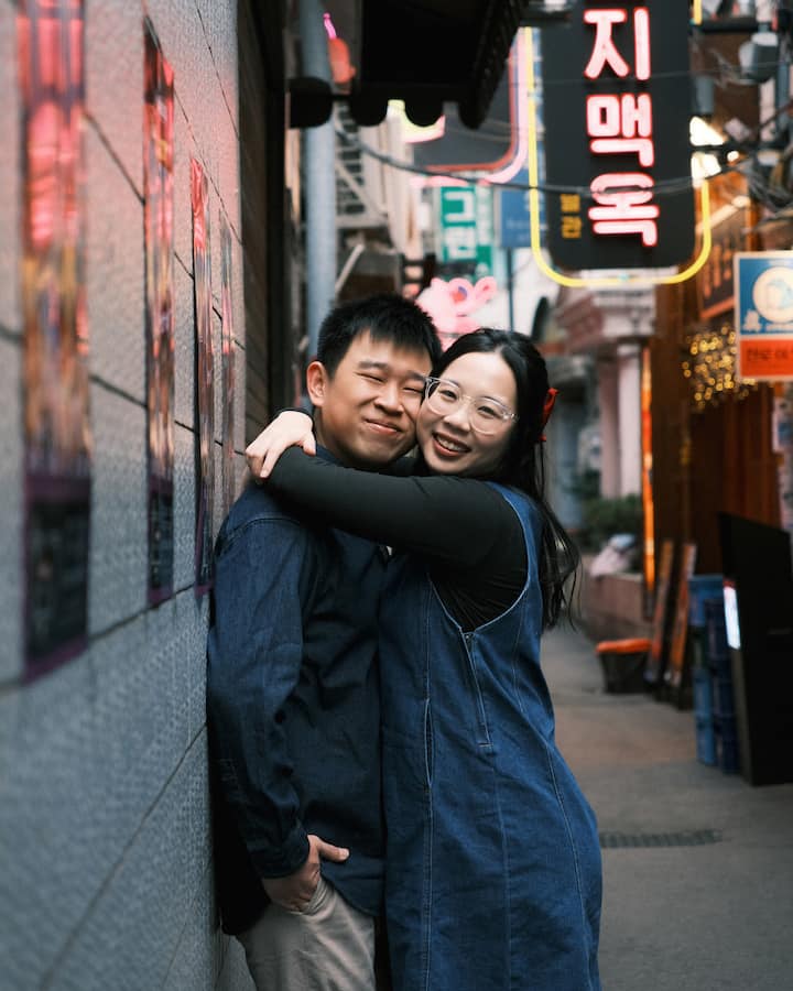 Від кінематографічних провулків до куточків, освітлених неоновими вогнями, – цей фотошлях створює основу для незабутніх спогадів – тільки ви двоє в місті, яке нагадує корейську драму.