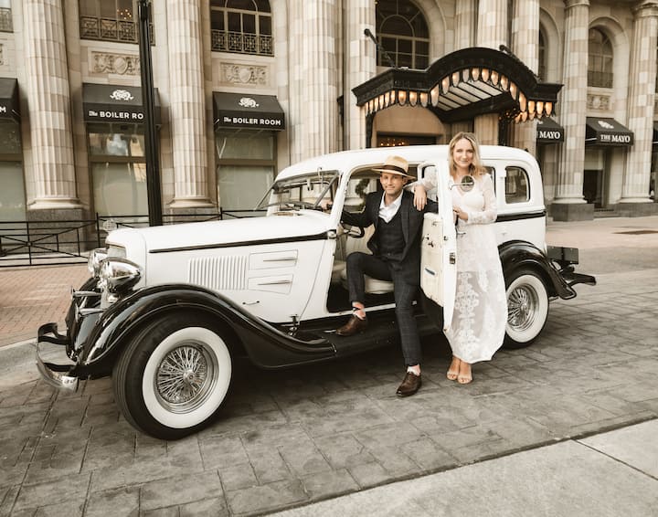 Ця розширена фотосесія передбачає 3 місця, 3 набори одягу, спеціальний автомобіль від Royal Wedding Car, доданий як реквізит, і 35–40 відредагованих цифрових зображень.