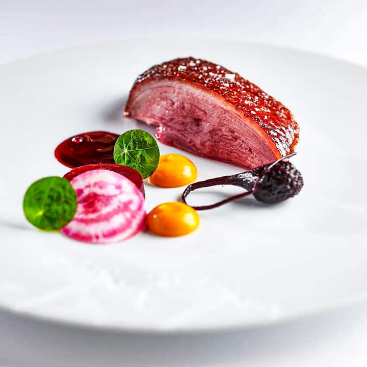 Це меню з трьох страв включає яскраву закуску, вишукану основну страву та елегантний десерт ручної роботи, приготовані з сезонних інгредієнтів.