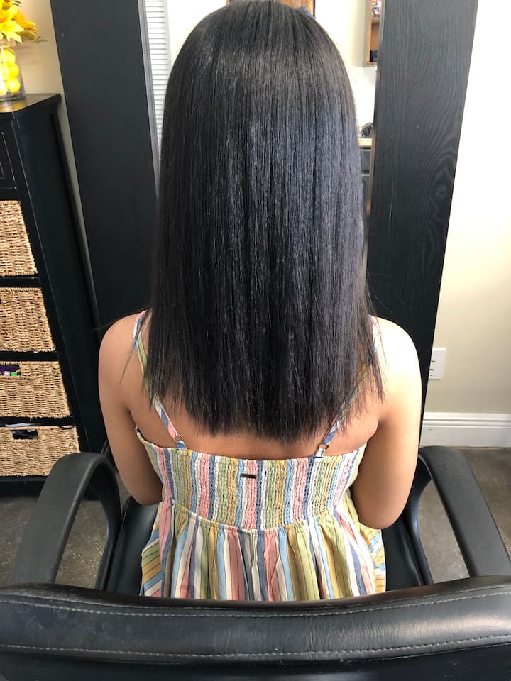 Спа-шампунь і кондиціонер, а потім сушка феном і укладка праскою або щипцями для завивки.