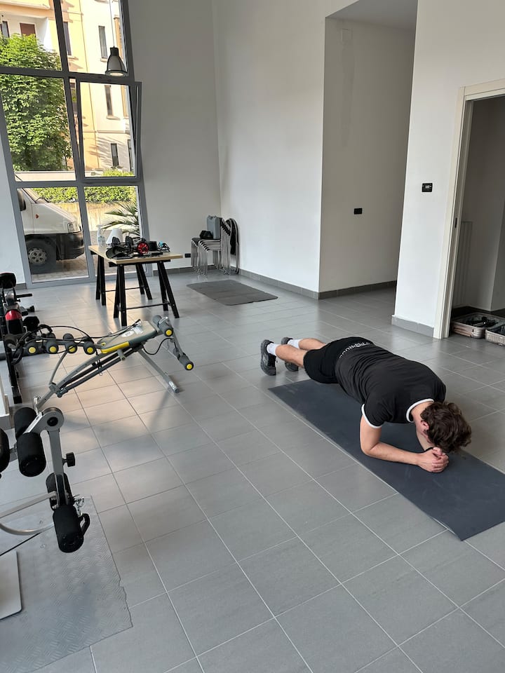 Сесія включатиме силові вправи, такі як присідання, віджимання та планка, а також частину, присвячену кардіо, адаптовану до ваших цілей та потреб.