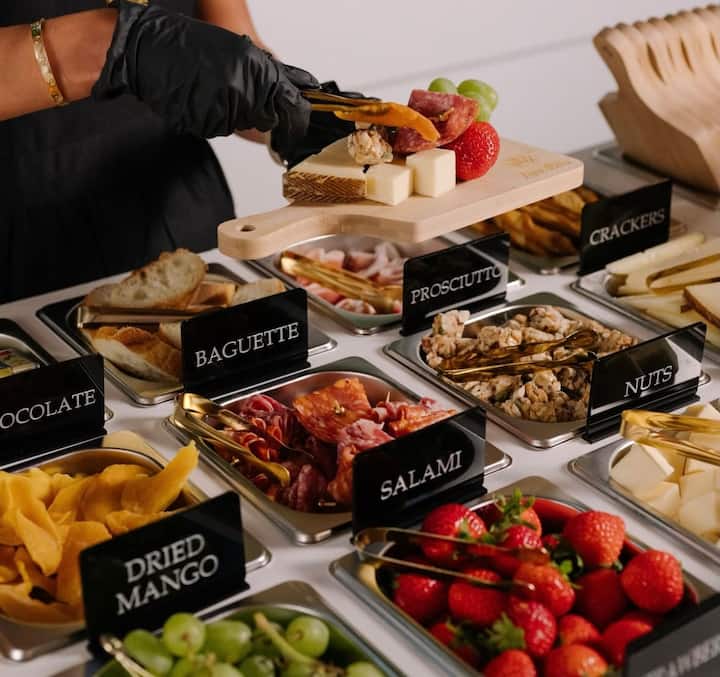 Кожен гість отримує індивідуальну бамбукову дошку з більш ніж 12 варіантами, зокрема трьома видами сиру, різними видами салямі та прошутто, двома видами фруктів, горіхами, шоколадом, сухофруктами, крекерами та хлібом.
