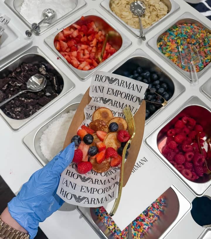 Гості можуть насолоджуватися міні-млинцями з більш ніж 12 варіантами начинки, зокрема сиропами, полуницями, бананами, чорницею, нутеллою, збитими вершками, цукровою пудрою, горіхами, міні-печивом, брауні, снікерсами та кокосовою стружкою.