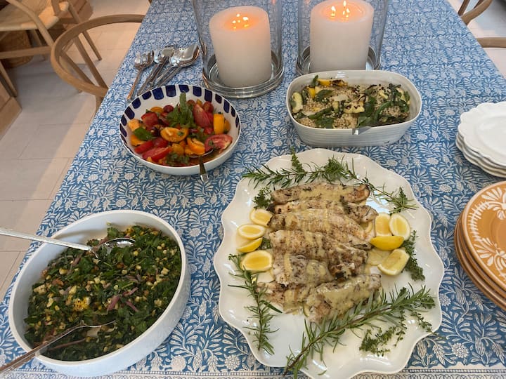 Насолоджуйтеся шикарними та доступними вечерями, невимушеними коктейльними вечірками, вишуканими бранчами або святкуваннями з продуманою каліфорнійською кухнею вдома, в помешканні Airbnb або в будь-якому іншому місці. Страви готуються зі свіжих сезонних інгредієнтів, а подаються просто і вишукано.