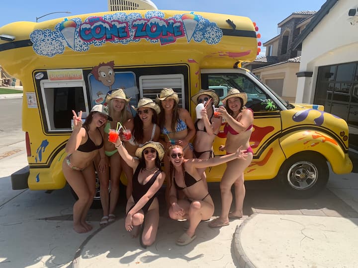 Надзвичайно веселий автобус Cone Zone ЗАВЖДИ користується популярністю, куди б він не їхав! Пропонує меню з преміального, схожого на сніг подрібненого льоду з більш ніж 14 смаками + 2 варіанти без цукру ТА СУПЕРОСОБЛИВІ морозива Maui Ice Cream! НЯМ! Подається в прозорій чашці: спочатку морозиво на дні, потім подрібнений лід, потім ароматизатор (наприклад, апельсиновий, щоб зробити наш «Апельсиновий крем-мрія» плаваючою коктейльною стравою!) і зверху — підсолоджене згущене молоко. Потрібен доступ до однієї електричної розетки Ми любимо казати: «Усі ОБОЖНЮЮТЬ… автобус Cone Zone!»