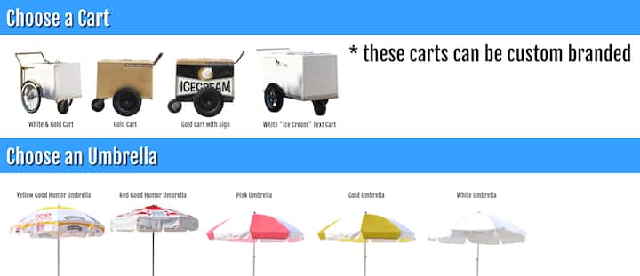 Підставка для парасольки – ідеальний вибір, якщо ви бажаєте насолодитися крижаним десертом у більш затишній обстановці безпосередньо біля басейну або на задньому дворі. Меню включає 6–12 сортів преміального крижаного льоду + принаймні один варіант без цукру та морозиво з газованою водою «Мауї». «Лимонад із льодом» також є популярною додатковою стравою. Основа стійки може бути покрита індивідуальним графічним зображенням, і ми пропонуємо різноманітні парасольки для цього обладнання залежно від побажань клієнта. Потрібен доступ до електричної розетки.