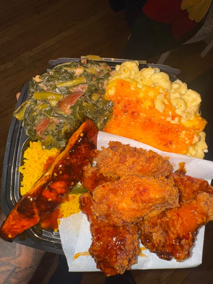 Насолоджуйтеся ситною стравою «Велика тарілка» з одним видом смачного м'яса на ваш вибір у поєднанні з трьома смачними гарнірами. До кожної тарілки подається свіжоспечений кукурудзяний хліб або булочка, щоб доповнити вашу трапезу. Ідеально підходить для приємного домашнього застілля, наповненого яскравими смаками та затишком, створеного, щоб ви відчули ситість і щастя.