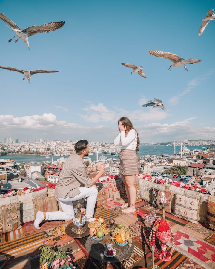 Виберіть між Блакитною мечеттю, мечеттю Сулейманіє, вулицею Каракой, Галатською вежею, площею Таксим, Балатом, Айя-Софією, Ортакьою або дахом із платою за вхід. Отримайте всі необроблені зображення та 20 відредагованих фотографій протягом 2 робочих днів.