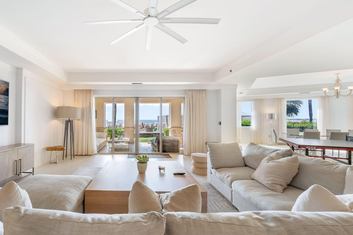 Newly completed, full-floor luxury residence on Seven Mile Beach with a spacious ocean balcony, designer interiors, and a communal infinity pool.