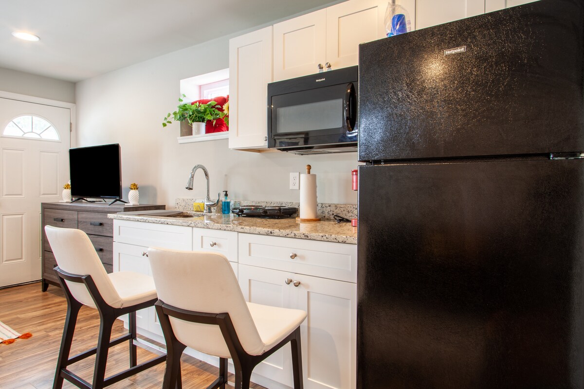 Beautiful all new, cozy 1950's home completely remodeled. All hardwood floors, new paint, new kitchen, bath, everything! Clean and quiet home/duplex with a front porch to enjoy morning tea/coffee or evening cocktails. Huge empty park across the street to keep things still. Very quiet neighbors. Owners are onsite and live in the back house for any issues or questions. PLEASE NOTE: We require a 2-night minimum stay on weekends.