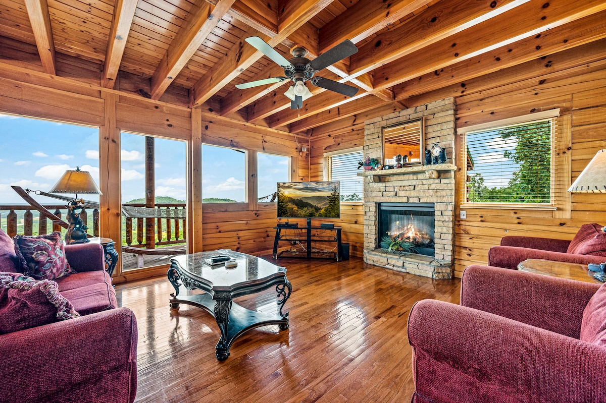 ❤️ Увага, пари! ❤️ ✔️ Затишний і затишний зруб - ідеальний романтичний відпочинок ✔️ Приголомшливі краєвиди на гори та прекрасні сходи сонця ✔️ Розслабляюча гідромасажна ванна та сауна ✔️ Персональна театральна кімната Ліжко ✔️ розміру King size ✔️ Добре обладнана кухня ✔️ Камін і чаша для багаття з гойдалками ✔️ Смарт-телевізори та швидкий Wi-Fi ✔️ Водні об 'єкти та ставок ✔️ Резервний генератор Зручне розташування 📍25 хвилин до Pigeon Forge 📍20 хвилин до Гатлінбурга