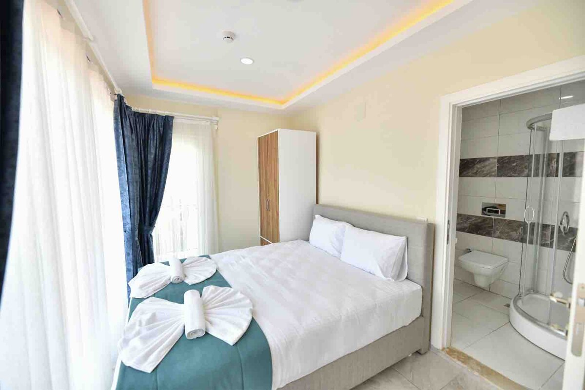 Наш люкс 1 +1, який знаходиться в 3 км від пляжу Ölüdeniz, складається з 1 спальні та 1 кухні вітальні. Басейн є спільним. На кухні є інструменти для приготування закусок на кухні, в 500 метрах від барної вулиці Хісарону, в 50 метрах від автовокзалу, в 50 метрах від ресторану, кафе, аптеки та продуктових магазинів. Наша вулиця широка для паркування, ви можете паркуватися безкоштовно, наш люкс розрахований на 2 осіб. Є 2 балкони.