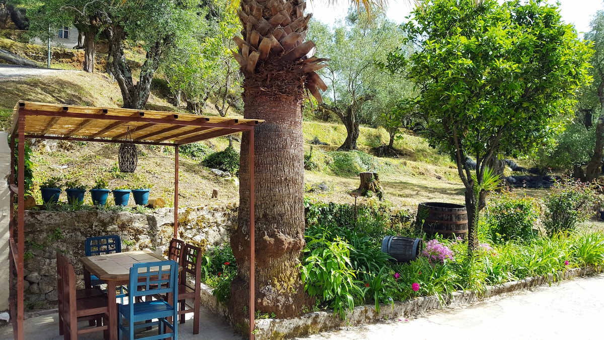 Автентичність навколишнього середовища та будинку, 200-річна кам 'яна будівля , надихнула нас на створення красивого та функціонального простору, повного світла, кольорів і спів птахів, які залишають від відкритих дверей балкона. Дивовижні краєвиди з патіо та саду, на морську поверхню та зелені пагорби, зцілення та спокій. Ідеально для відвідувачів, які шукають справжню сторону острова. Поруч із горами, пляжами (в 10 хвилинах їзди на автомобілі) , містом Корфу (25 хв.