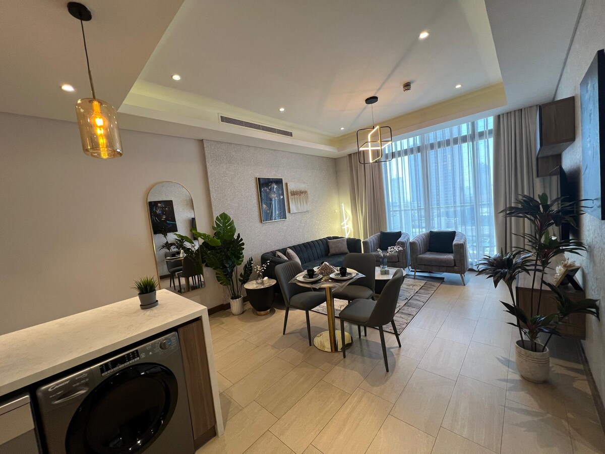 Це особливе місце розташоване неподалік від усього, що полегшує планування візиту. Відпочиньте в цій стильній квартирі з видом на море та сучасним дизайном. До складу квартири входять: - 1 спальня - 2 ванні кімнати; - Повністю обладнана кухня. - вітальня - Посудомийна машина - Інтернет - Viber - Смарт-телевізор - Автостоянка. Об 'єкти: Басейн, гриль, гімназія Розташування: Квартира знаходиться в декількох кроках від торгового центру City Centre, недалеко від торгового центру High Mall, Bahrain Mall, Rural Island та Muda Mall. Ми з нетерпінням чекатимемо на ваш прийом і зробимо ваше перебування унікальним, і для входу в систему нам може знадобитися посвідчення особи.