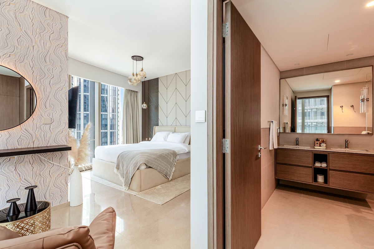 Квартира з однією спальнею на високому поверсі в центрі міста, поруч із Бурдж-Халіфою. Басейн на даху. Ліжко King Size. Безкоштовний Wi-Fi та тренажерний зал. Поруч із метро. Ласкаво просимо до вашого дому далеко від дому. У цій стильній, сучасній та центральній квартирі є все, щоб зробити ваше перебування абсолютно найкращим. Насолоджуйтеся життям поруч із найвищою будівлею світу з розкішшю прекрасного помешкання. Ви лише: У 5 хвилинах від Бурдж-Халіфа В 5 хвилинах від торгового центру Dubai Mall. У 10 хвилинах від пляжу Ла-Мер В 20 хвилинах від JBR