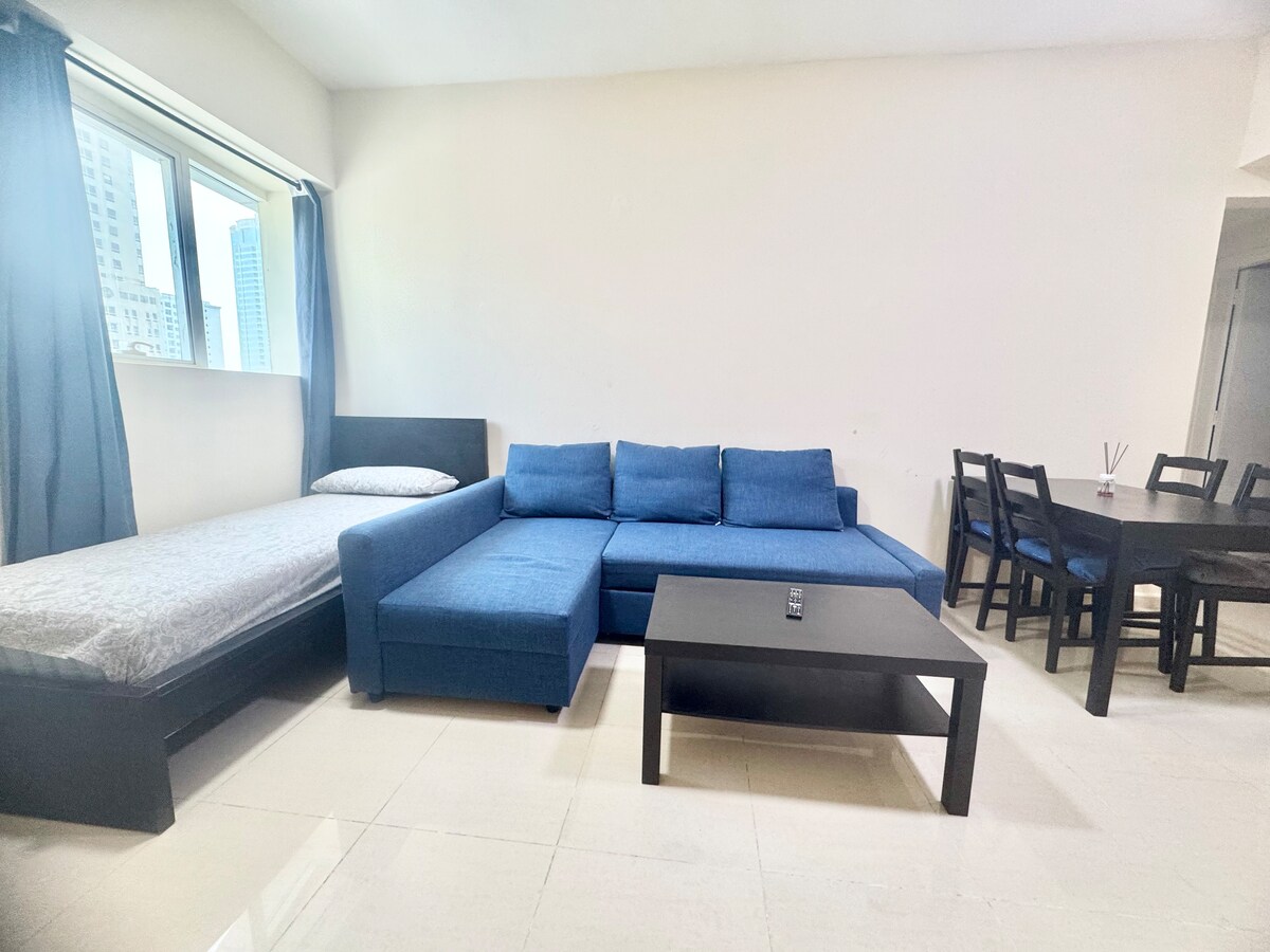 Ваш розкішний РОЗУМНИЙ будинок знаходиться в 10 хвилинах від пляжу в висококласному районі Jumeirah Lakes Towers. Використовуйте свій голос, щоб керувати світлом і грати музику, а також насолоджуватися зручним кушеткою під час перегляду фільмів на 50-дюймовому телевізорі 4K. Ви всього в одній хвилині від метро з безкоштовною парковкою, тренажерним залом і сауною. Життя не може бути зручнішим із десятками ресторанів і магазинів біля вашого порога. Ми раді всім! Примітка. Басейн у будівлі закритий для технічного обслуговування до подальшого повідомлення.