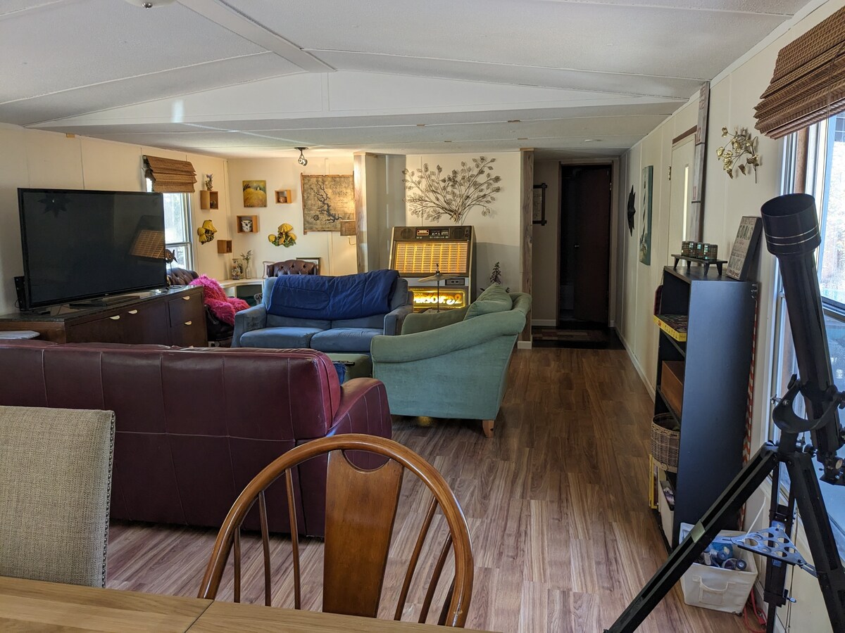Розслабтеся й відпочиньте протягом тижня або місяця в нашому добре обладнаному помешканні в Йорку, Південна Кароліна. Наш веселий і незвичайний мобільний будинок розташований на 3 акрах напівлісистої землі, віддалено від головної дороги, з місцем для розміщення човна або причепа будь-якого розміру, а також з достатньою кількістю зеленої території для вашої групи. Три спальні, всі з зручними ліжками та додатковими ковдрами, забезпечують чудовий нічний відпочинок для всіх гостей. Дві ванні кімнати та відкритий план помешкання забезпечують достатньо місця для відпочинку.