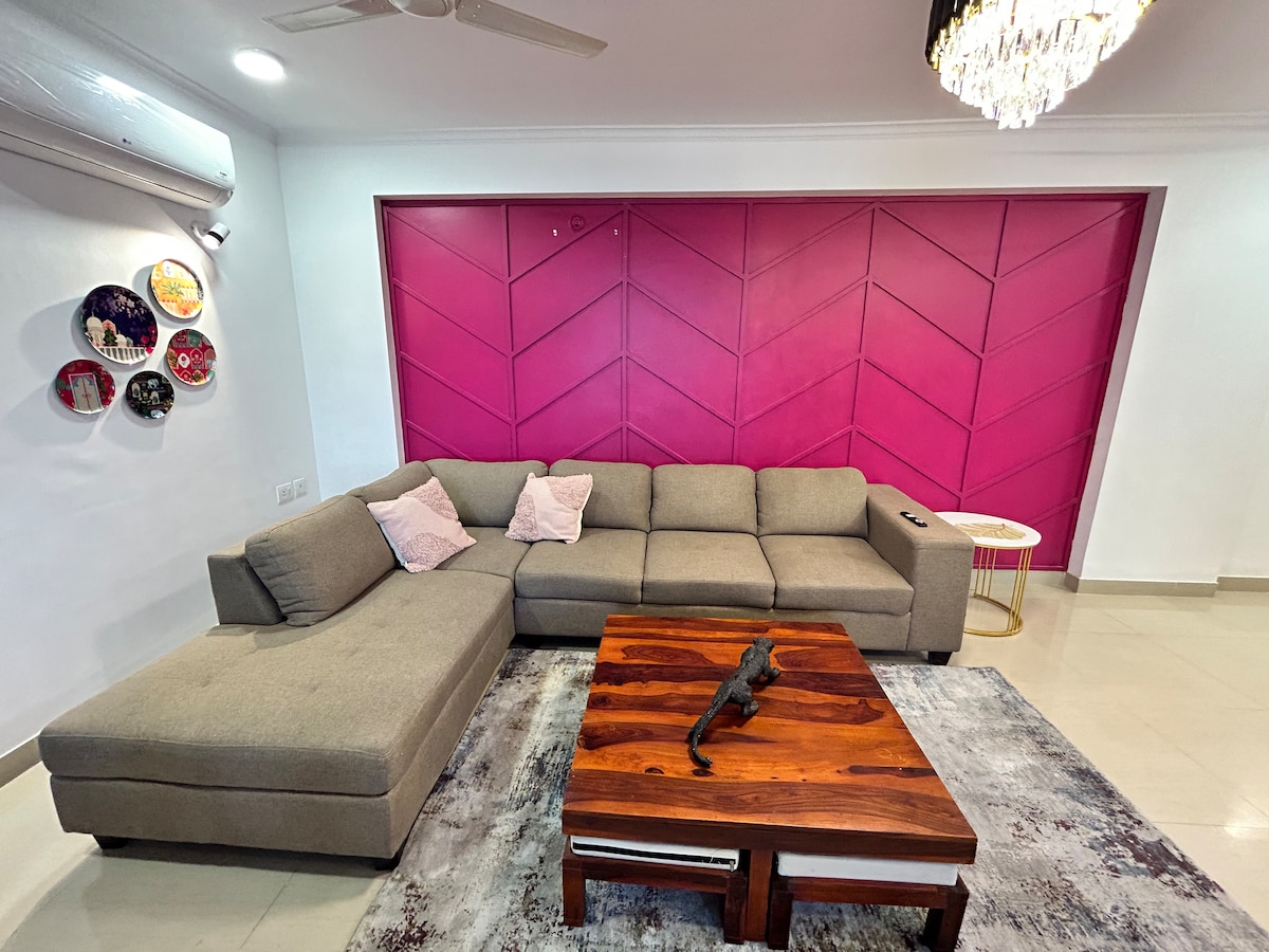Centrally located modern abode is everything a guest would desire. It offers 3 BHK with attached bathrooms, for family and friends of 10(max) with comfort. Stationed at the 7th floor with space and all amenities, the flat secures ample air flow in & around the house. It also has an open balcony to have city view at night. All in all, this home calls for the travelers excited to experience the luxurious and friendly abode and take away the happy moments this house and City has to offer.