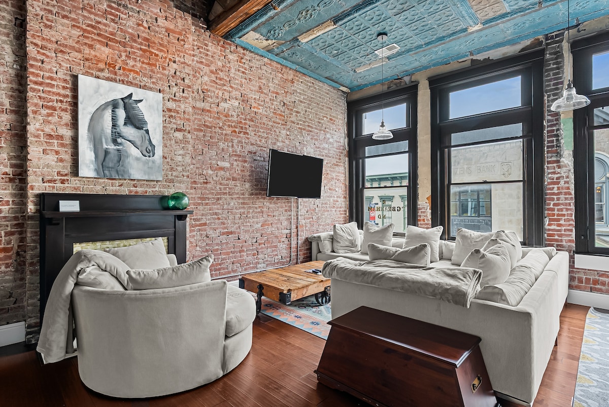 Ultra Luxury downtown 2 BR loft, spacious enough for 5 adults. Located in quaint Downtown Shelbyville, KY, you are in the heart of the bluegrass near major distilleries and race tracks and close to coffee shops, restaurants and bars right on the same block. You can't go wrong with this unique loft for its decor and proximity to everything. Close to all distilleries on the eastern part of the Trail and centrally located to all distilleries in the state. Come see what this space has to offer