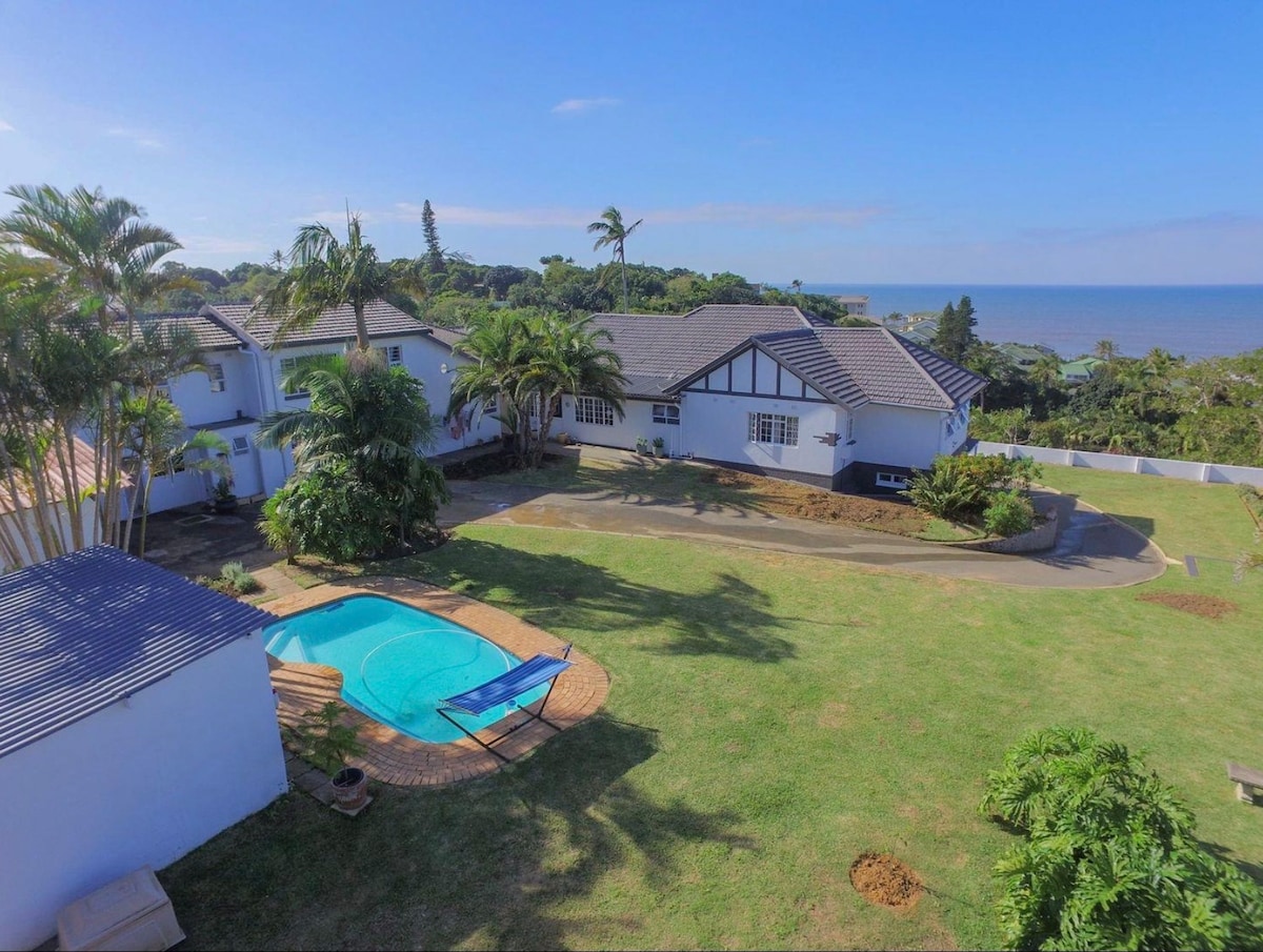 Принесіть всю сім 'ю до цього чудового місця з багатьма кімнатами. Це ідеальний відпочинок для багатопоколінної сім’ї. Повністю обладнані інверторними та сонячними панелями, а також 3 резервуари Jojo по 5000 літрів, наповнені міською водою, ви ніколи не будете без електрики або води. У нас є красивий басейн із видом на море протягом декількох днів. Головний пляж Рамсгейта з блакитним прапором та Waffle House знаходяться всього за 1 км пішки, якщо йти кам’яними сходами в кінці нашої вулиці. Безкоштовне прибирання двічі на тиждень.