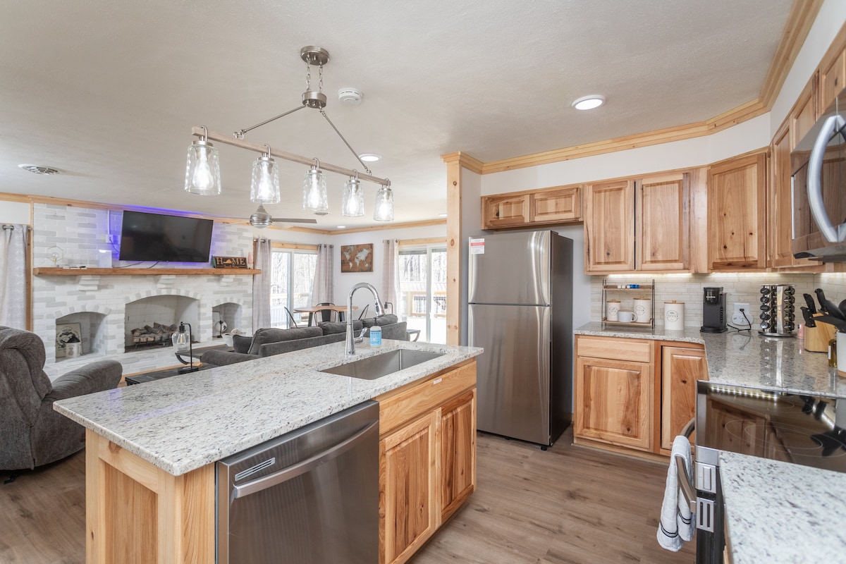 ✦ Зручно розташоване неподалік від помешкань на байдарках і тюбінгах у Shenandoah River Outfitters. ✦ Відпочиньте в розслаблюючій гідромасажній ванні з видом на ліс ✦ Окреме офісне приміщення, обладнане швидким Wi-Fi для безперебійних дзвінків у Zoom. ✦ Красиво оформлена, добре обладнана сучасна кухня для домашніх страв. ✦ Підключіться до своїх потокових сервісів на 55-дюймовому Roku Smart TV. ✦ Відпочиньте на відкритому повітрі з наявним відкритим грилем, місцем для багаття та сидіннями.