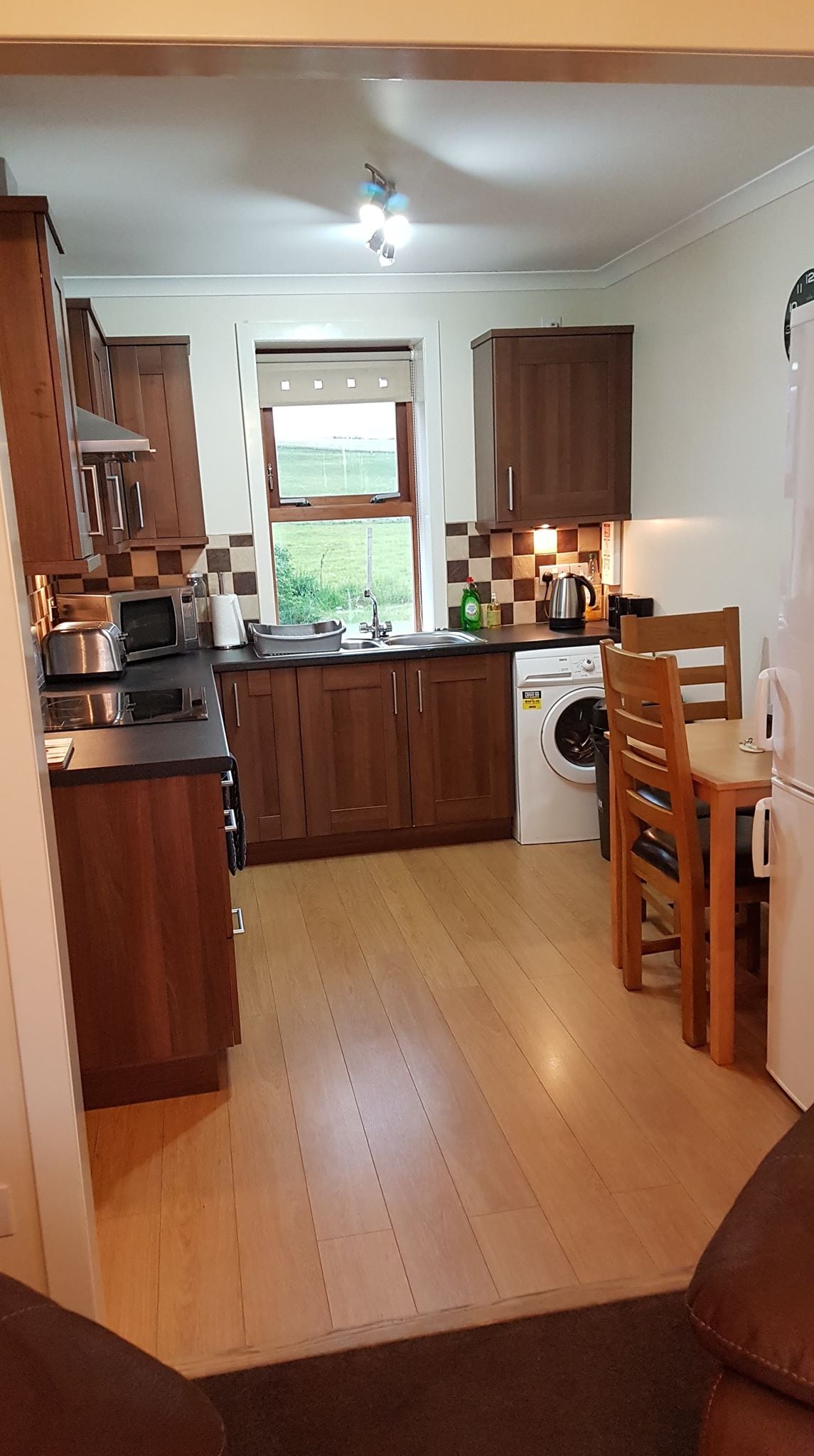 Peerie Neuk - це стійко побудований крихітний екологічний будинок з усім комфортом затишного будинку, трохи крихітнішого! Є двоспальне ліжко та розкладний диван, що підходить для одного дорослого або двох дітей. Є невелика кухня з варочною поверхнею, чайником і маленьким холодильником (достатньо велика для двох пляшок просекко🤣). Є дров 'яна піч з духовкою. Духова шафа підтримуватиме тепло. На вимогу є гаряча вода, душ і компостний туалет.