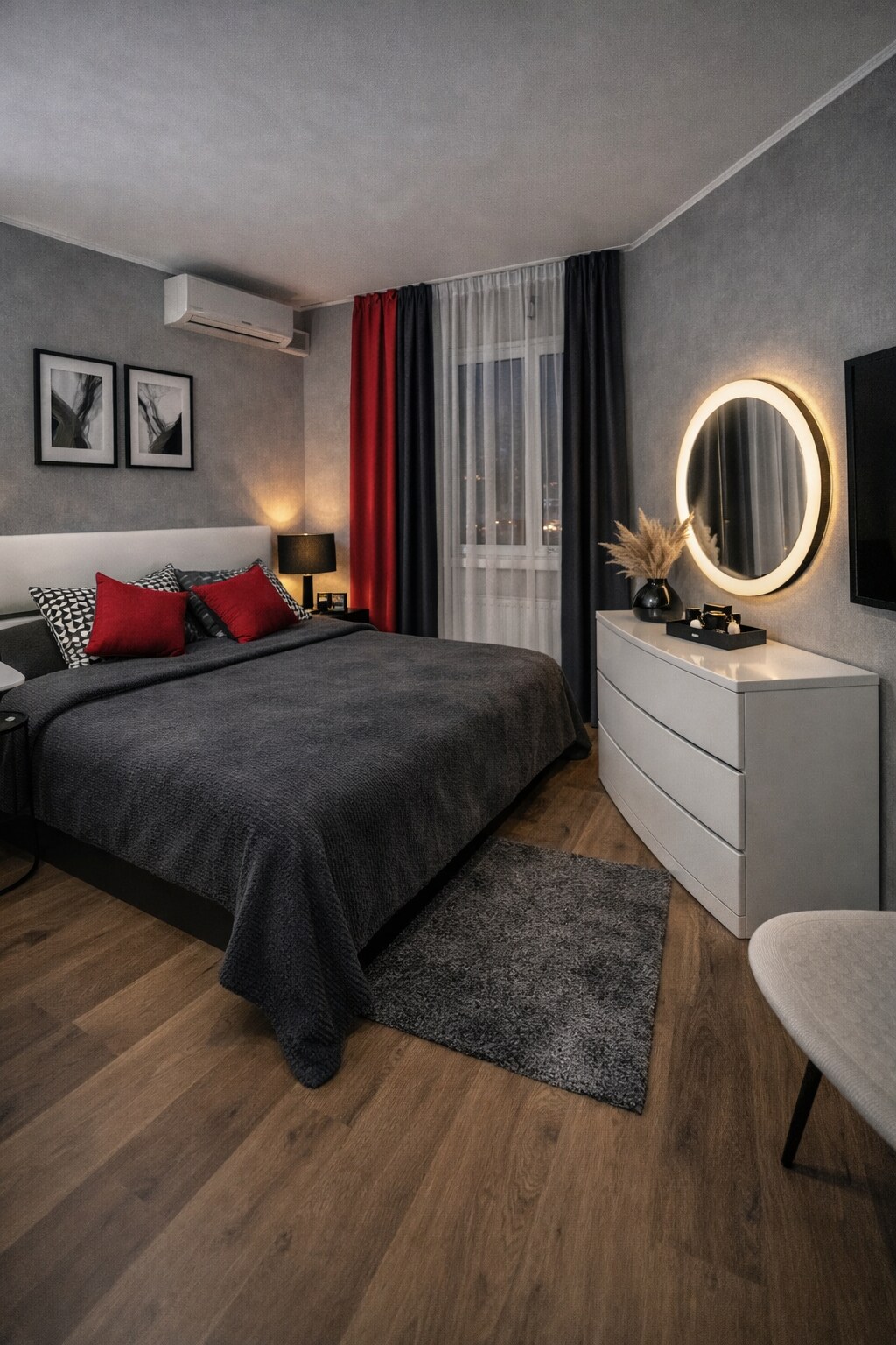 Квартира розташована на 6-му поверсі недалеко від метро Олімпійська (700 метрів). За лічені секунди можна дістатися надійного сховища - підземний паркинг у 14 маршах сходів. Вікна обернені від вулиці в середину двору. Супермаркет Мегамаркет у 400 метрах. Фото/відео зйомки потребують окремого погодження господаря. Stylish apartment in the very heart of the city of Kiev. Overlooking the sunset from the 6th floor of the modern highrise, an apartment complex CHICAGO Central House.
