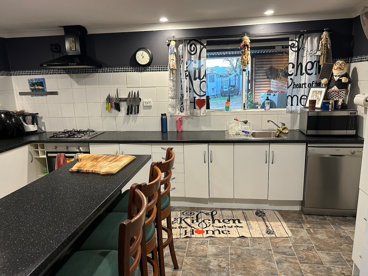 Розташована на невеликій пшеничній фермі в 2 хвилинах їзди від Корригіна на популярних доріжках до автомобільної стежки Wave Rock. Ідеальні вихідні для пар і сімей або чудова нічна зупинка під час подорожі до Wave Rock або громадської силової стежки. Три просторі спальні з двоспальними ліжками, вітальня з вітальнею, телевізором і обіднім столом, розкішною ванною кімнатою з ванною та тропічним душем, міні-кухнею з холодильником, мікрохвильовою піччю та кавоваркою. Годуйте доброзичливих сільськогосподарських тварин щоранку.
