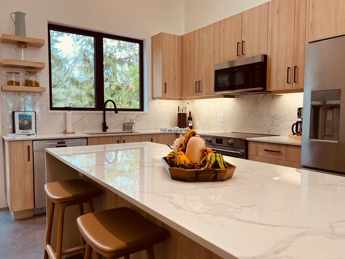 Розташований серед високих дерев річки Йордан, Британська Колумбія, Woodshed пропонує спокійний відпочинок. Чисті лінії, обробка з натурального дерева та мінімалістичний дизайн поєднуються з пишним прибережним лісом. Просторі вікна забезпечують яскраве світло та безперервний краєвид на вічнозелені рослини, створюючи спокій і зв 'язок із природою. Розроблений, щоб викликати спокій, простір балансує з теплом і простотою, де шепот дерев і далекі звуки океану створюють ідеальний фон для відпочинку та роздумів.